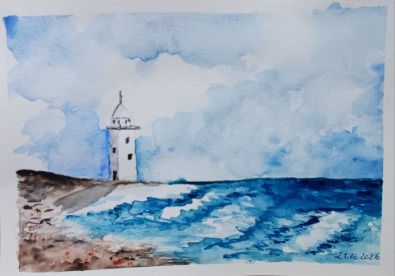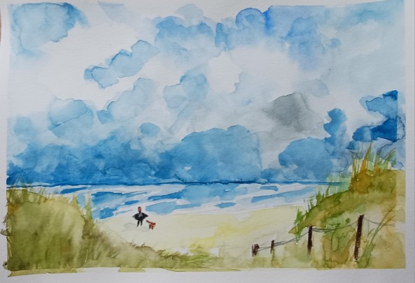 Meine innere Künstlerin nähren. Ohne Erwartungsdruck, sondern mit Experimentierfreude malen. Papier hervorholen, den Aquarellkasten aufklappen, Farben mit ein wenig Wasser besprühen, damit sie ihre Strahlkraft entfalten können und Musik für die richtige Atmosphäre einschalten. Die Wolken und das Meer malen. Mir Raum schenken. Alles andere der Aufmerksamkeit entziehen und mir erlauben, in den  Flow zu kommen. Dem nachgehen, was  aus mir heraus will und etwas entstehen lassen. Ganz schlicht.